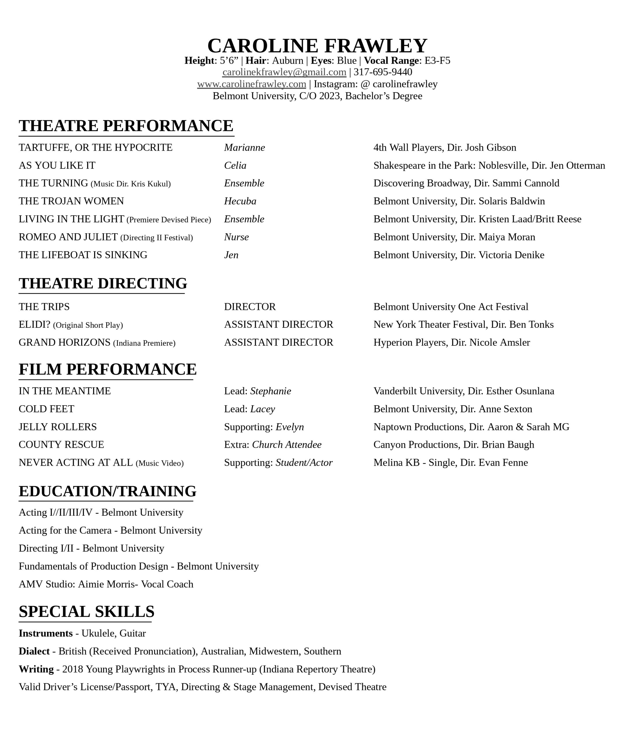 Hello! My name is Caroline and I am a New York City-based/Hoosier-born actor and director.